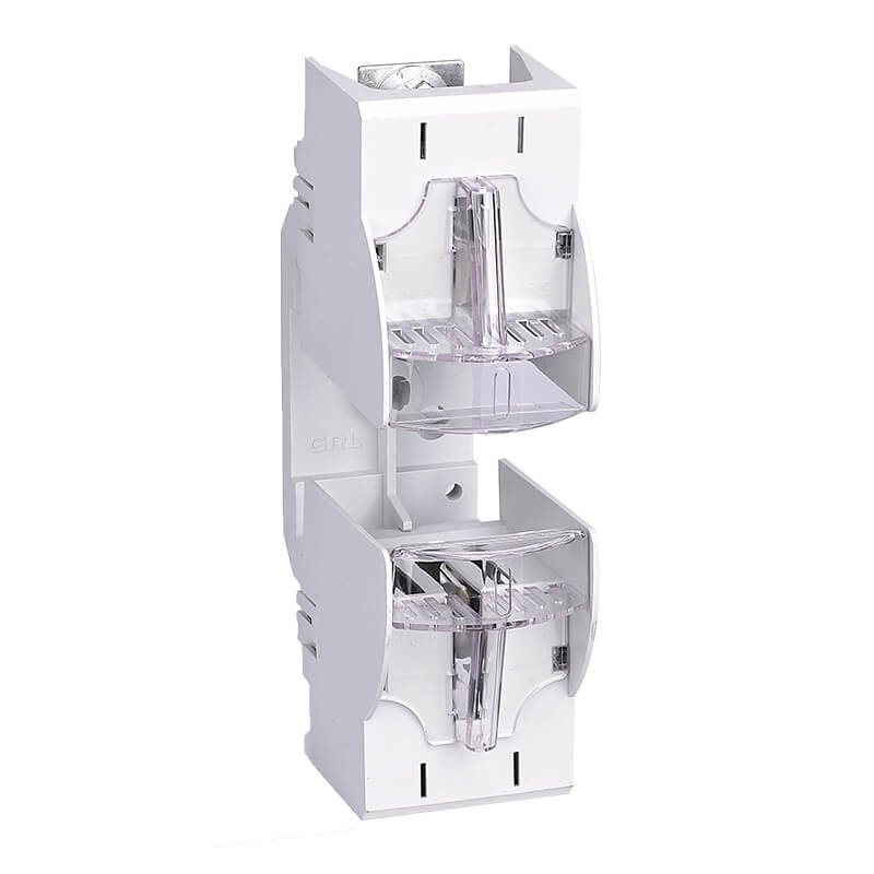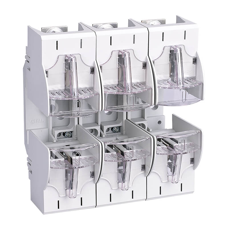 DNF1 consists of base,contact,cover and other components.The 3 Phase Fuse Carrier is made of PA66, flame retardant V0 level.Contact is made of T2 copper with tin plated.DNF2 is in same structure with DNF1,but the base material is made of ceramic.By the way,GRL also can do customized products,for example,the base material also can be steel plate for better performance.