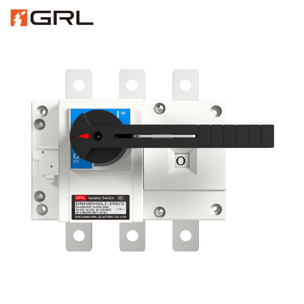 3 Pole Isolator Switches DNH8(HGL) series are designed for use in a variety of applications where circuit turn-on and turn-off or electrical isolation is required. They are available in seven different models, ranging from 63A to 3150A, and feature a modular design with three and four levels (three levels + neutral level for turn-on and turn-off).