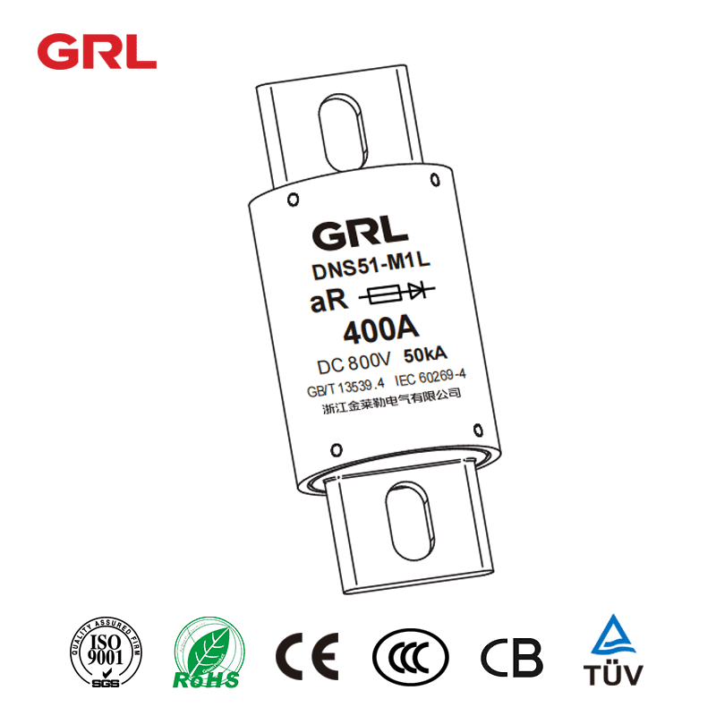 DNS□□-M1L aR Fuse link for semiconductor equipment protection, suitable for DC system, with rated voltage of 800V and rated current of 35a~800a, is used for short-circuit protection of semiconductor components and their complete sets of equipment. All performance indexes of the product comply with gb/t 13539.4/ IEC 60269-4.