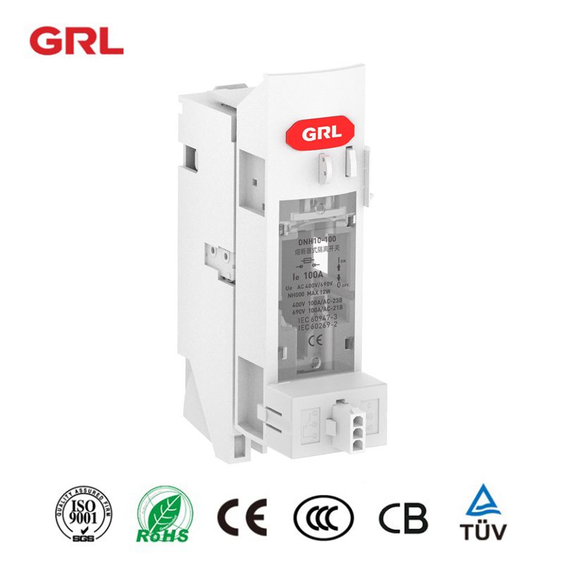 GRL DNH1 fuse switch disconnector can be operated with load and is suitable for rated current between 40A and 630A.The power input side can be the upper side and also can be the bottom side of the fuse switch disconnector. There are knife-edge entry and arc extinguishing devices.It can work with fuse monitor and can be used as a knife switch.