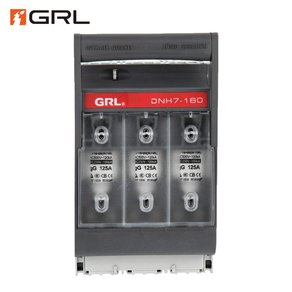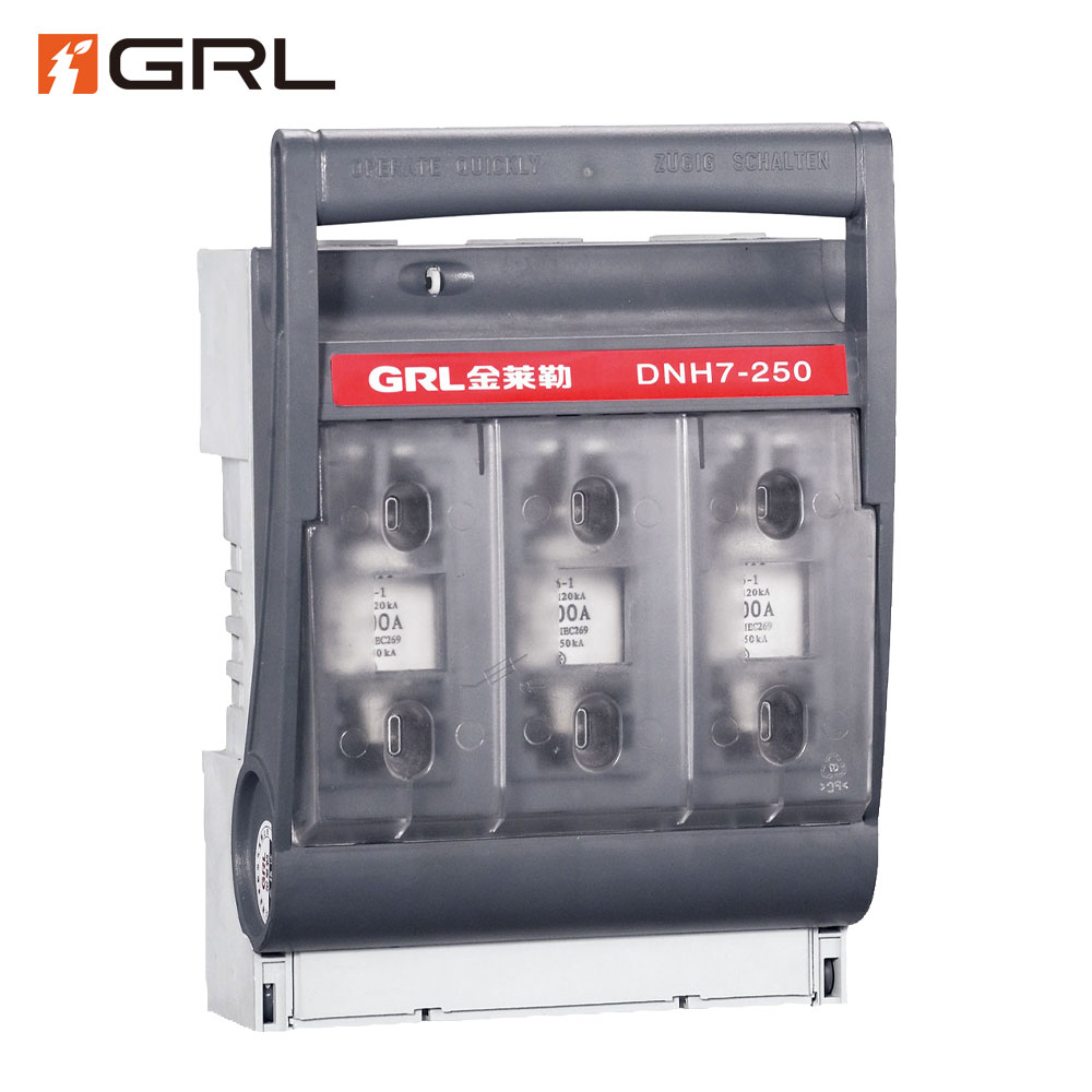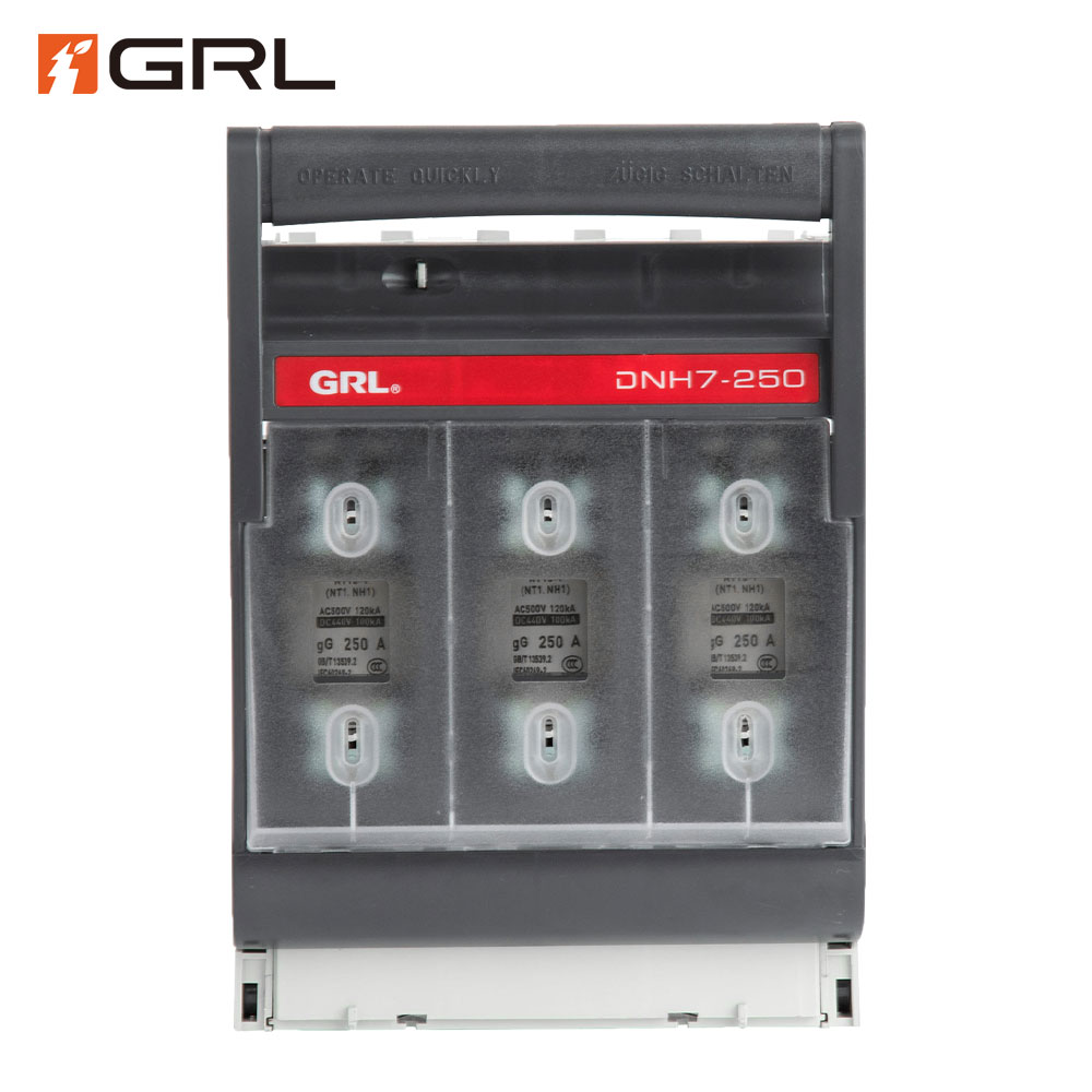 > GRL DNH7 Fuse Switch Disconnector enables safe manual connecting and disconnecting electrical circuits under load.Their main purpose is to protect electrical equipment against overload and short circuit by using fuse-links from size 00 to size 3.