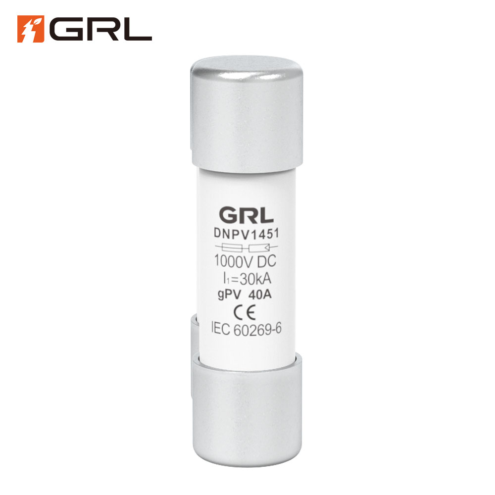 Product Introduction: The GRL DNPV1451 is a 14×51 mm DC photovoltaic fuse link engineered for high-reliability solar system protection. Like the DNPV1038, it is gPV-classified and rated for up to 1000 VDC, with a higher current range (12–50 A). This larger fuse link suits combiner boxes and DC distribution panels in commercial and utility PV installations. It provides short-circuit and overload protection for solar panel strings and semiconductor devices in PV arrays. By isolating only the faulty branch (“selective fusing”), the DNPV1451 helps maximize system uptime. The robust cylindrical fuse is made for demanding outdoor environments and aligns with GRL’s reputation for industrial-quality solar protection