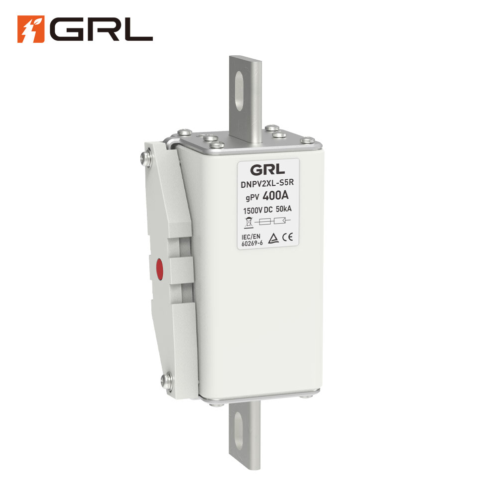 The GRL DNPV2XL-S5R series solar fuse link is a high-capacity, high-speed DC circuit protection device tailored for the complex demands of 1500V photovoltaic systems. Rated from 125A to 400A, this photovoltaic fuse link is defined by its ‘R’ installation form, the Spiral connection type (contactor turns 90°). This unique feature provides engineers with unparalleled flexibility for secure integration into customized or space-constrained switchgear and PV combiner box fuse link designs.