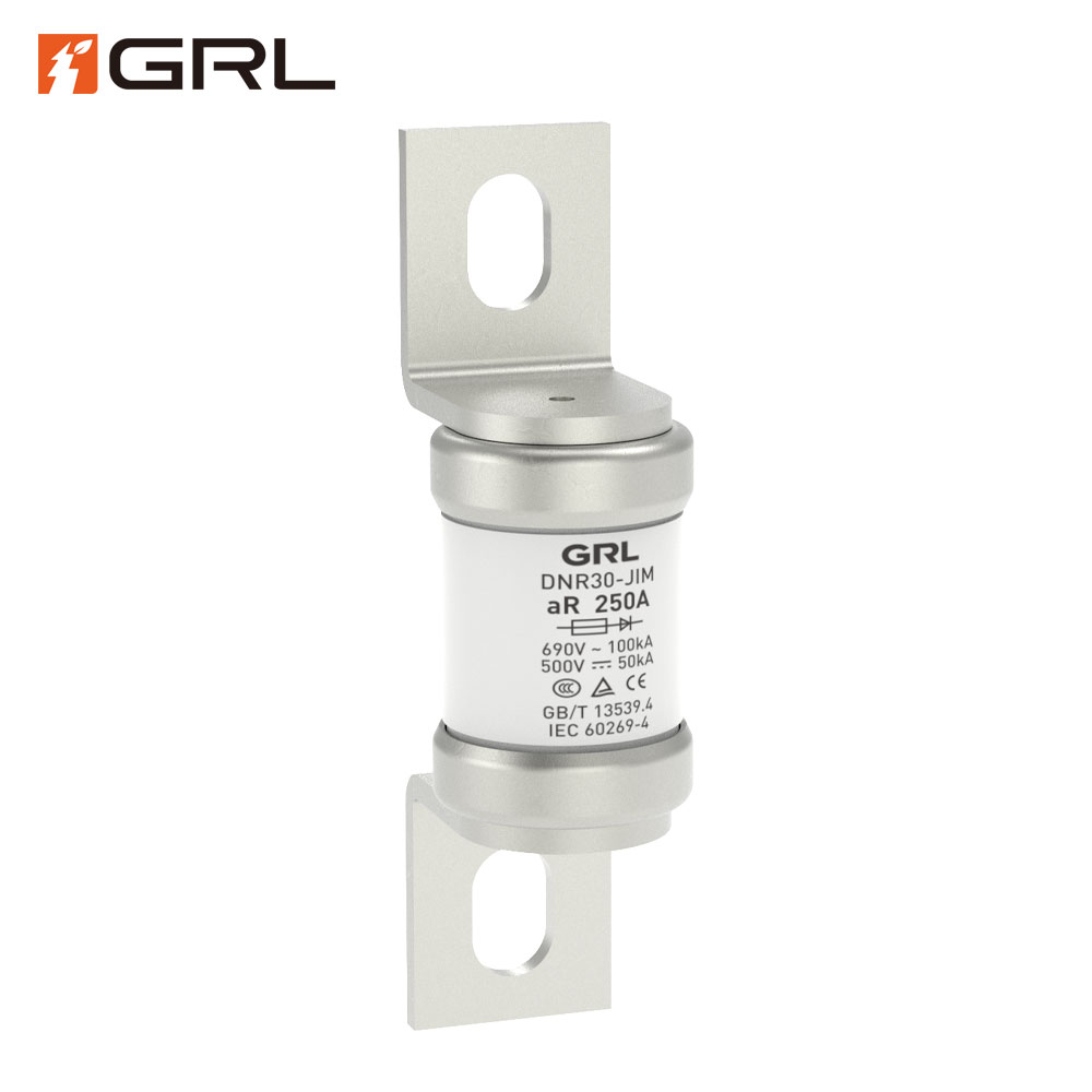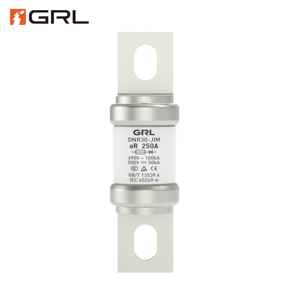 DNR30-J1M high-current semiconductor fuse link (AC 690V / DC 500V, 80–250A) for industrial power protection. Provides fast short-circuit interruption. Meets IEC 60269-4, CE, CCC, TUV. Ideal for large inverters, converters and EV battery systems.