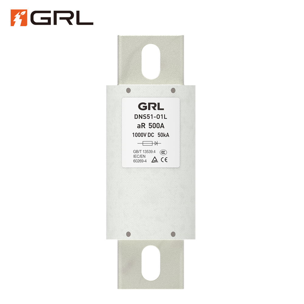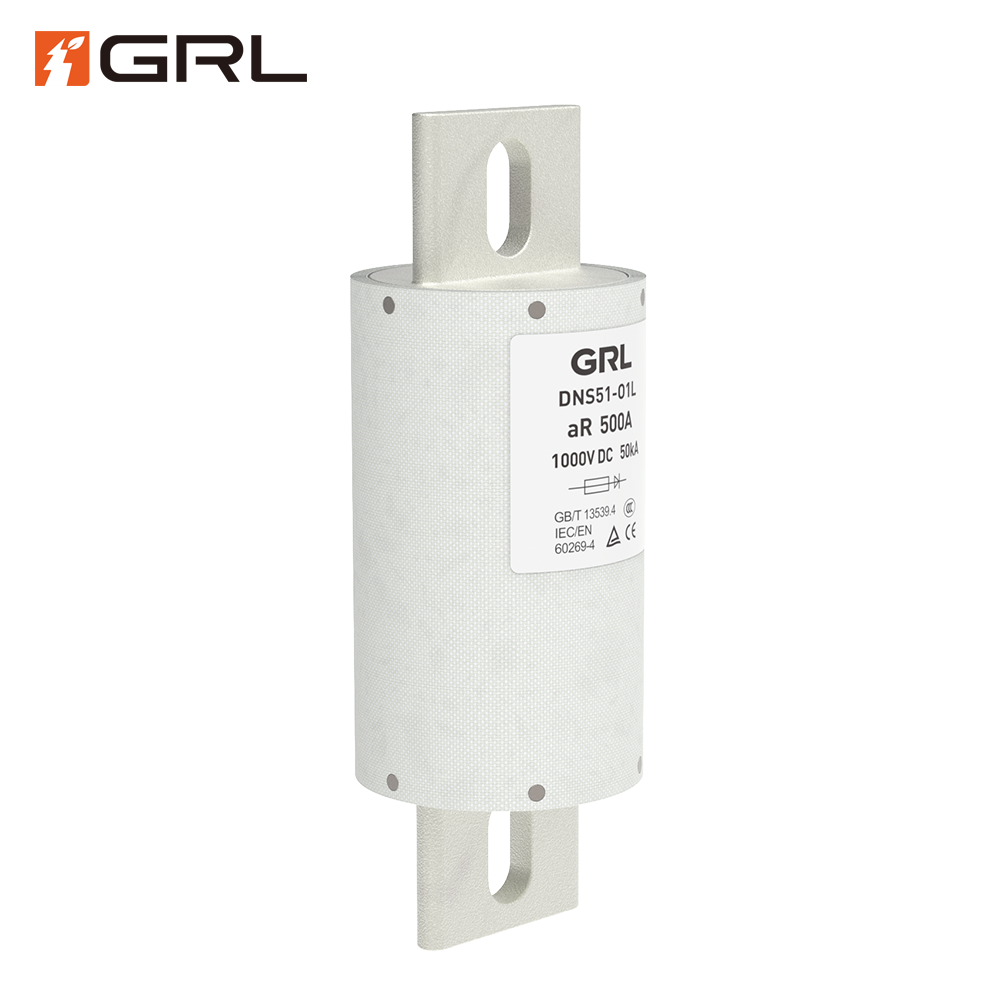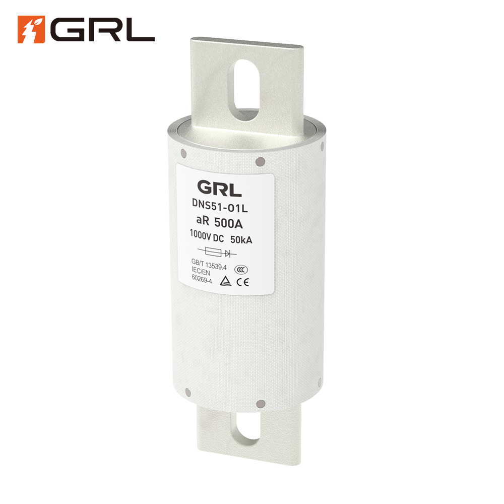 The GRL DNS51-O1L is a high-performance fuse link specifically designed for the protection of semiconductor equipment. With a rated voltage of 1000V DC and a current rating ranging from 200A to 500A, this fuse ensures reliable short-circuit and overload protection in demanding applications. It is engineered to meet international standards including GB/T 13539.4 and IEC 60269-4, and carries certifications such as CCC, CE, and TUV.